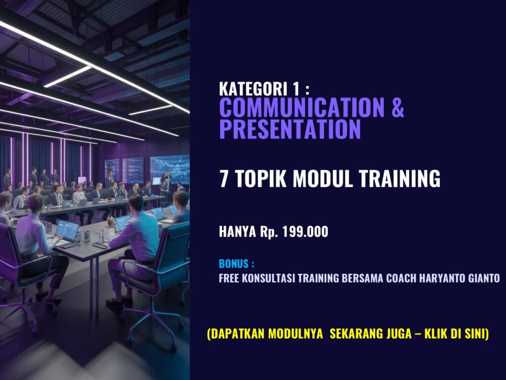 Anda akan mendapatkan 7 Modul Topik Training Communication & Presentation